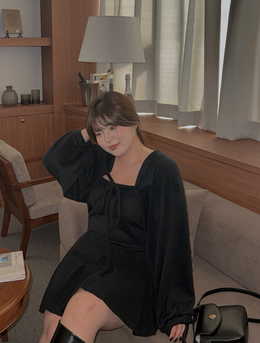 訂購需知🧸 逢星期一截單📃 截單後9-24日到貨⏳ ♡毛茸茸質感背心+開衫套裝♡ 2 SIZE 2 COLORS ✔ 背心+波萊羅開衫套裝 ✔ 遮蓋手臂肉肉的波萊羅開襟衫設計 ✔ 前帶細節可輕鬆綁上或鬆開 ✔ 毛茸茸的保暖質料 ✔ 柔軟輕質的混紡布料 -顏色- 灰色/ 黑色 大碼Model 穿著 | 2碼 | 最後一位Model 穿著 | 1碼 | 詳細尺碼: 1碼 肩闊49 胸圍98~ (可調綁帶) 袖長68 總長度38 背心胸圍94~ (有彈性) 長度55 2碼 肩闊56 胸圍112~ (可調綁帶) 袖長69 總長度41 背心胸圍108~ (有彈性) 長度60 (以cm為單位)